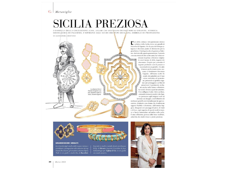È una storia in crescendo quella di Palumbo & Gigante. Una storia di passione familiare lunga 122 anni che, anno dopo anno, è diventata il punto di riferimento per la gioielleria e l’orologeria alto di gamma in Sicilia. Nel 122esimo anniversario dell’azienda la famiglia presenta Echo, Legami che risuonano, la prima collezione originale di gioielli interamente disegnata, realizzata e firmata da Palumbo e Gigante, ispirata alle meraviglie del patrimonio archeologico, artistico e culturale della Sicilia.