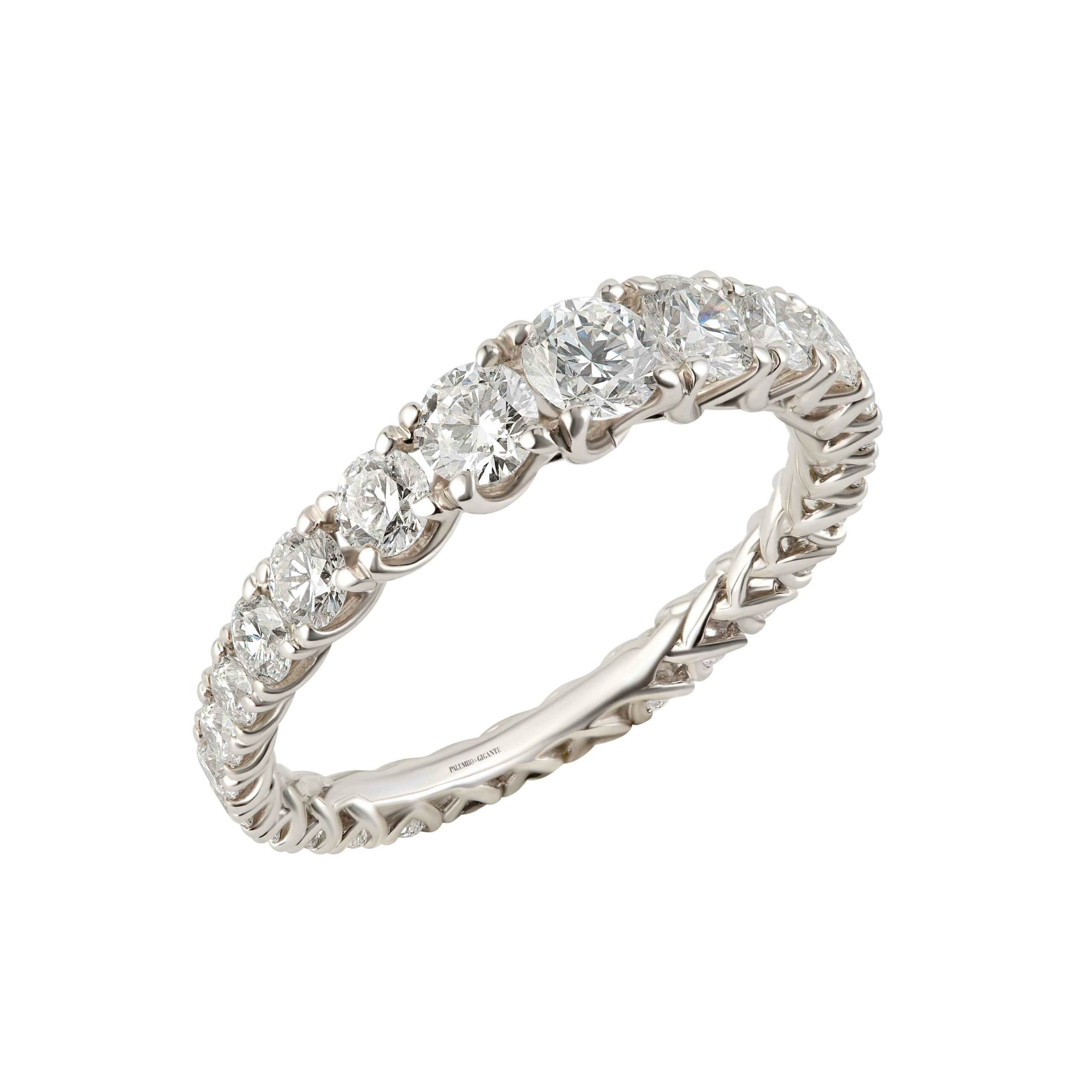Anello veretta in oro bianco 750/1000 con diamanti certificati, taglio brillante disponibile a partire da 0,16 carati. Si prega di notare che il peso in carati, il colore, la purezza, il taglio e il numero di pietre possono variare in funzione della gemma ordinata. Per maggiori informazioni, si prega di contattarci.